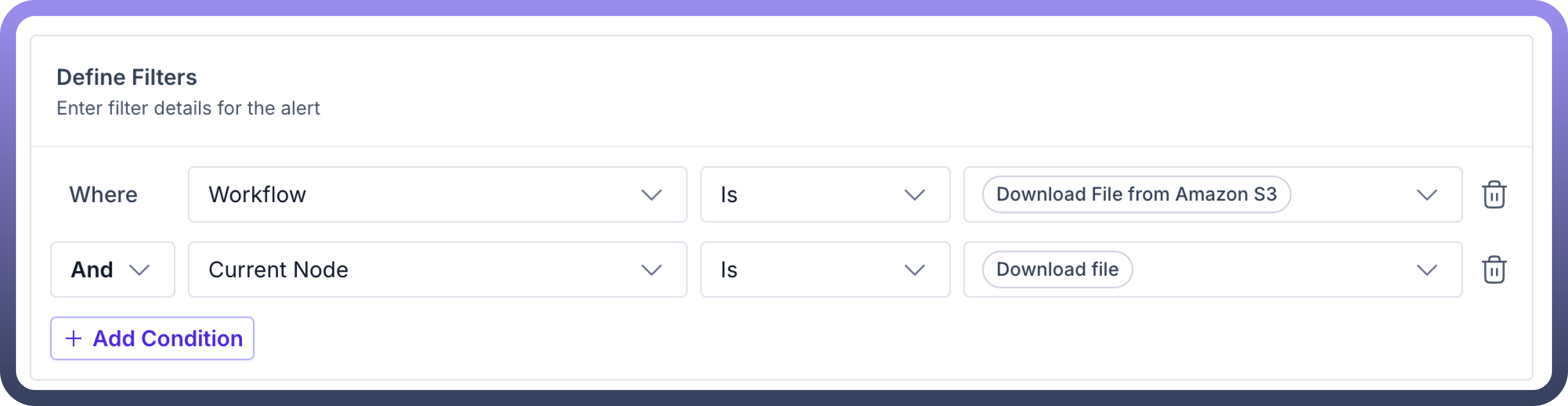 Monitor the S3 download automation workflow by adding filters specifically for the "