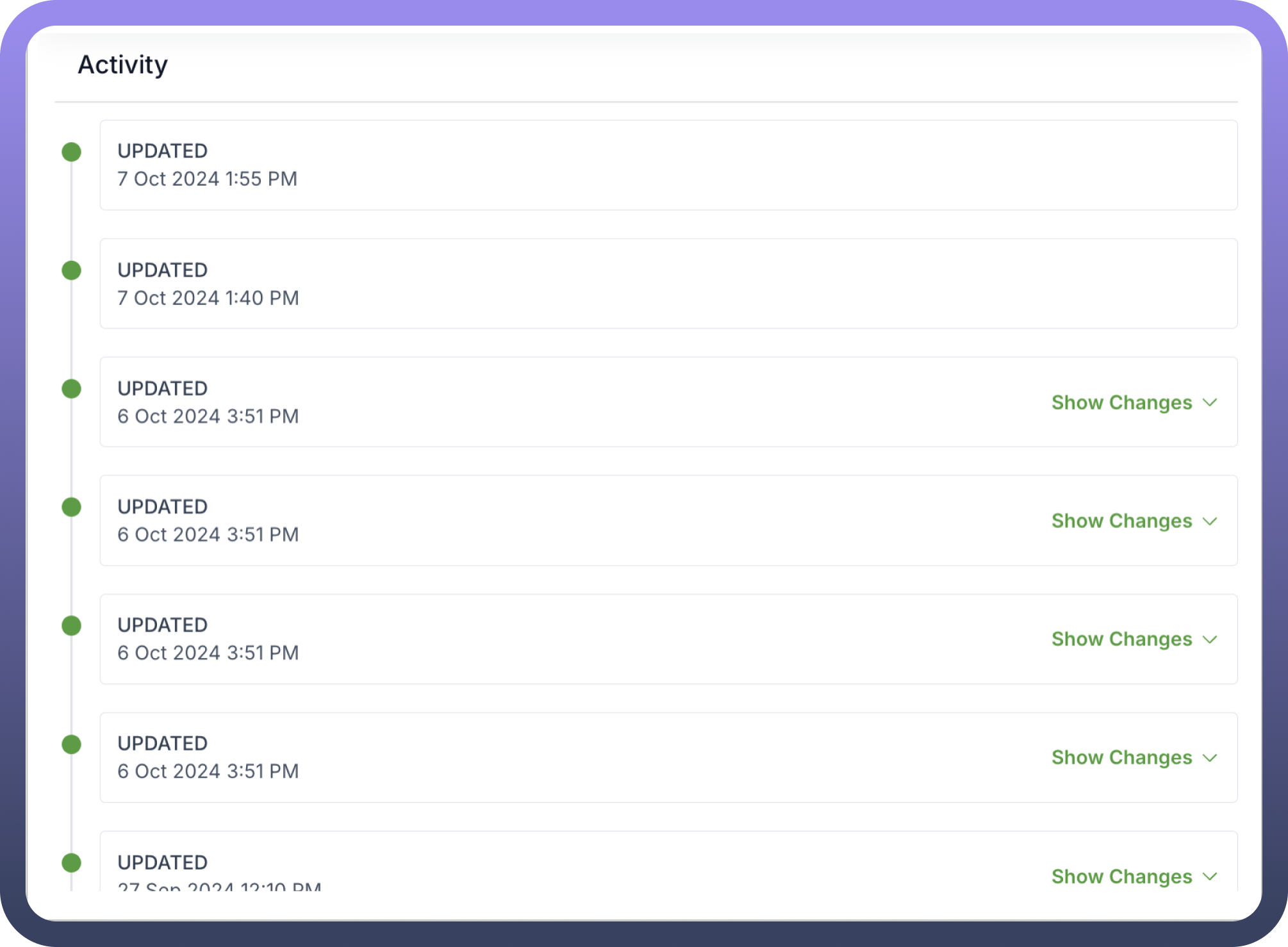Unlike the detailed technical logging of the Audit Trail, Activity Tracking captures higher-level business events such as status transitions, assignment changes, user comments, and workflow progressions.