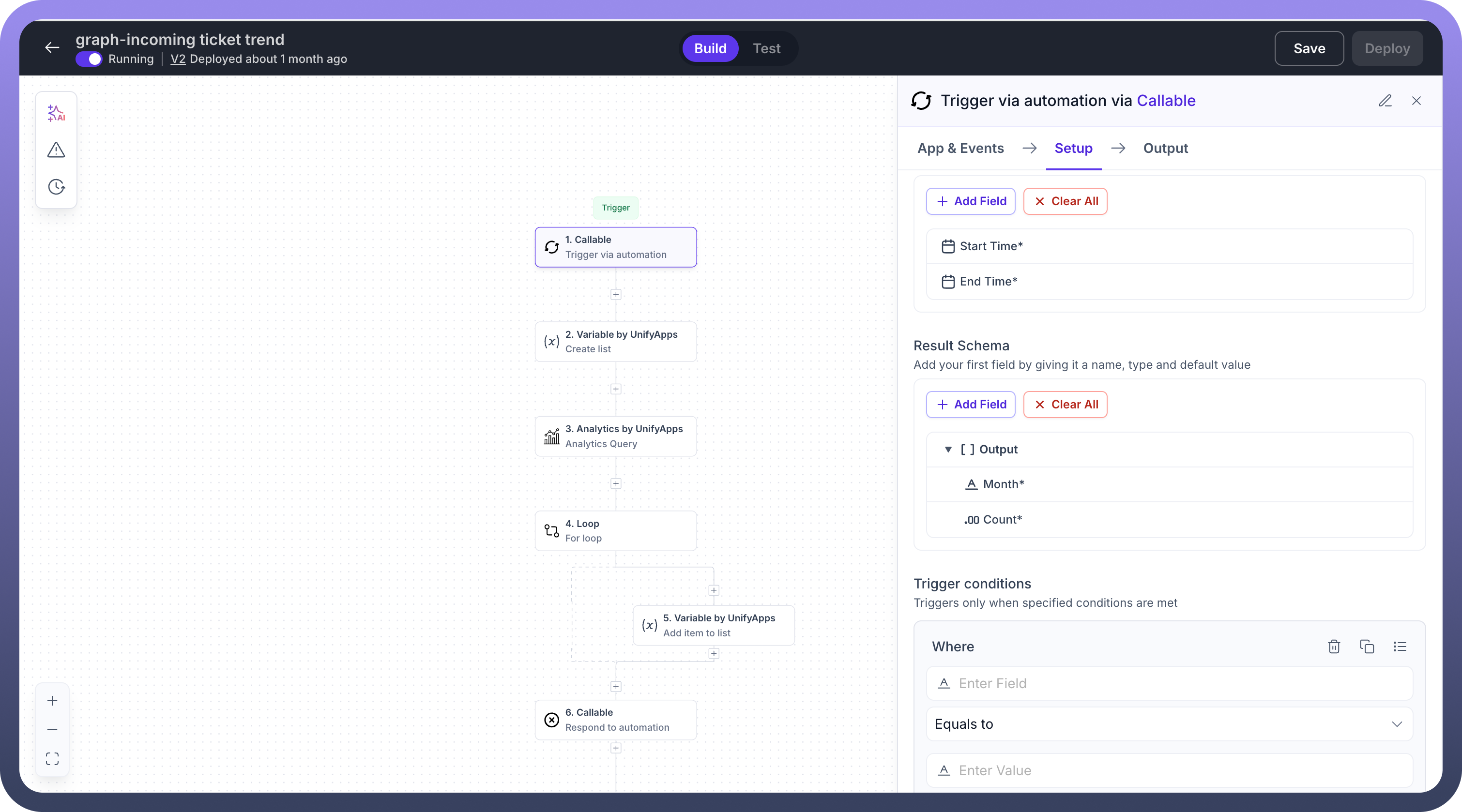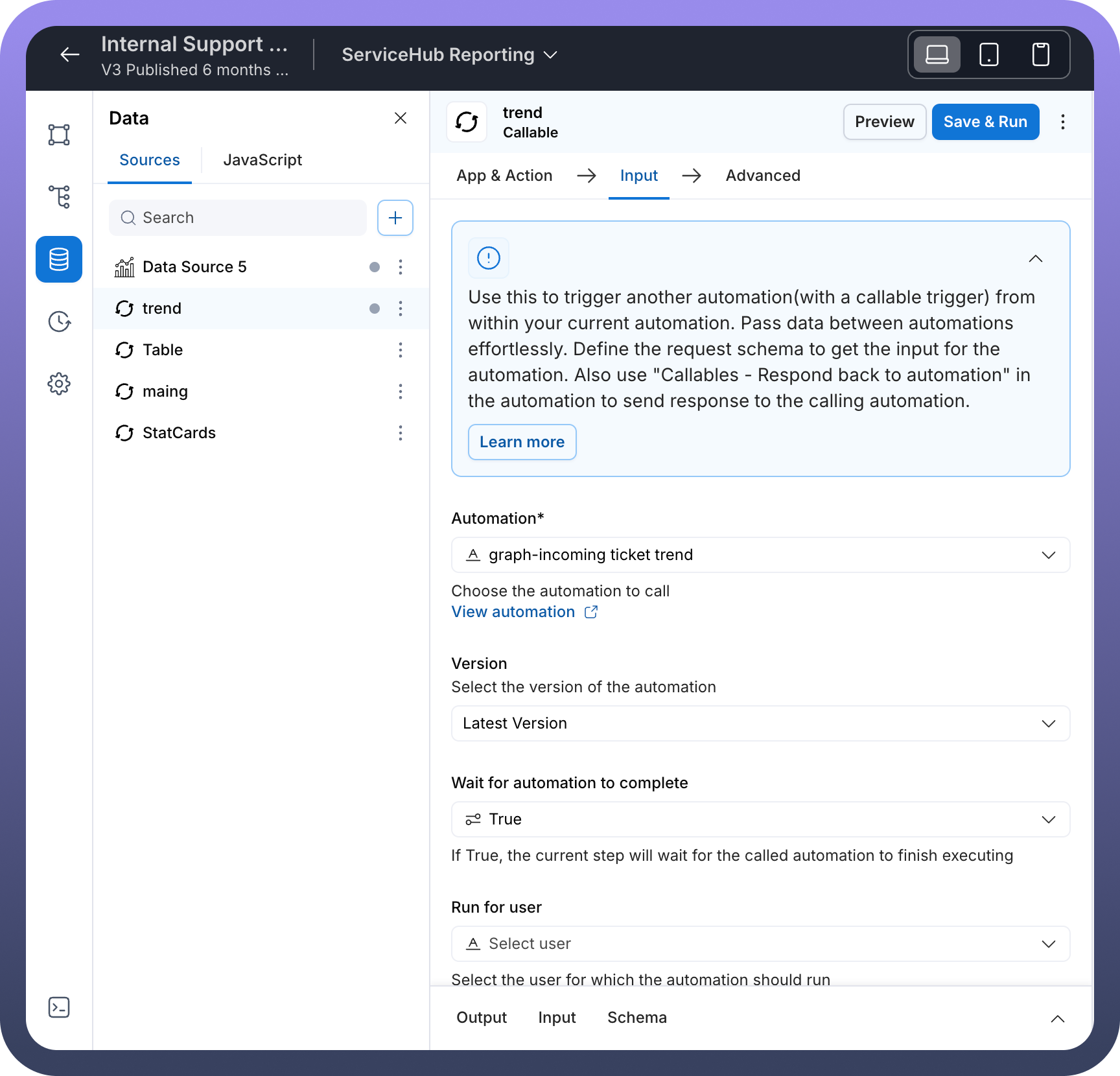 trend” fetches values for the chart via an automation “graph-incoming ticket trend” as mentioned in the screenshotThis automation is used to fetch all the values for the chart