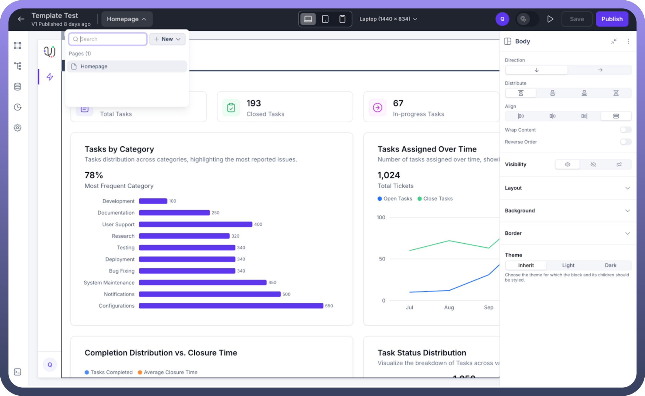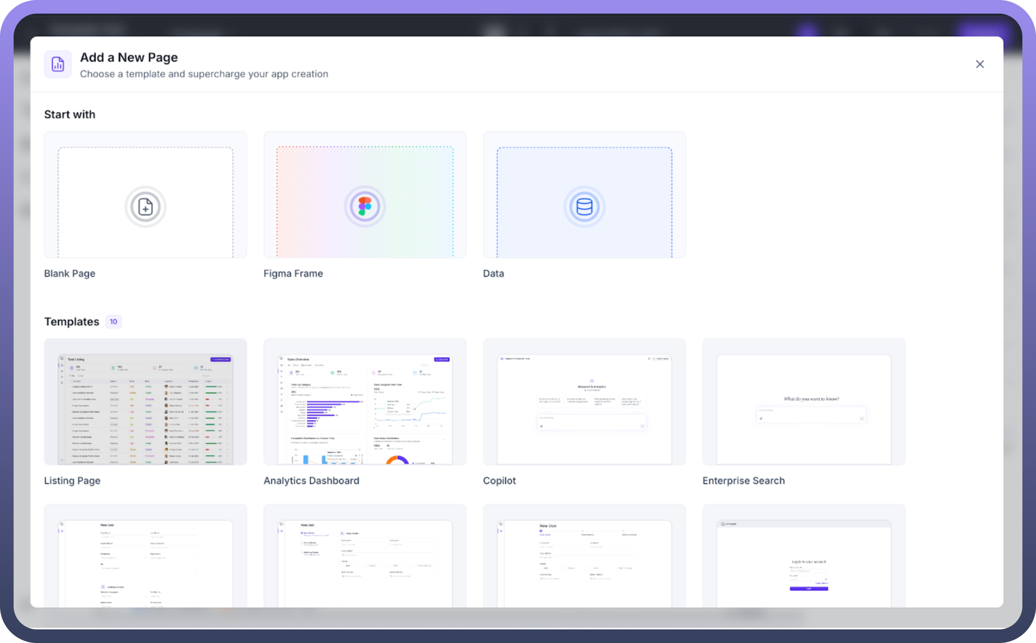 Page Templates in the UnifyApps platform simplify application creation, allowing users to quickly build and configure applications by selecting from various pre-built, customizable page structures. These templates offer essential functionalities tailored for different user interactions.