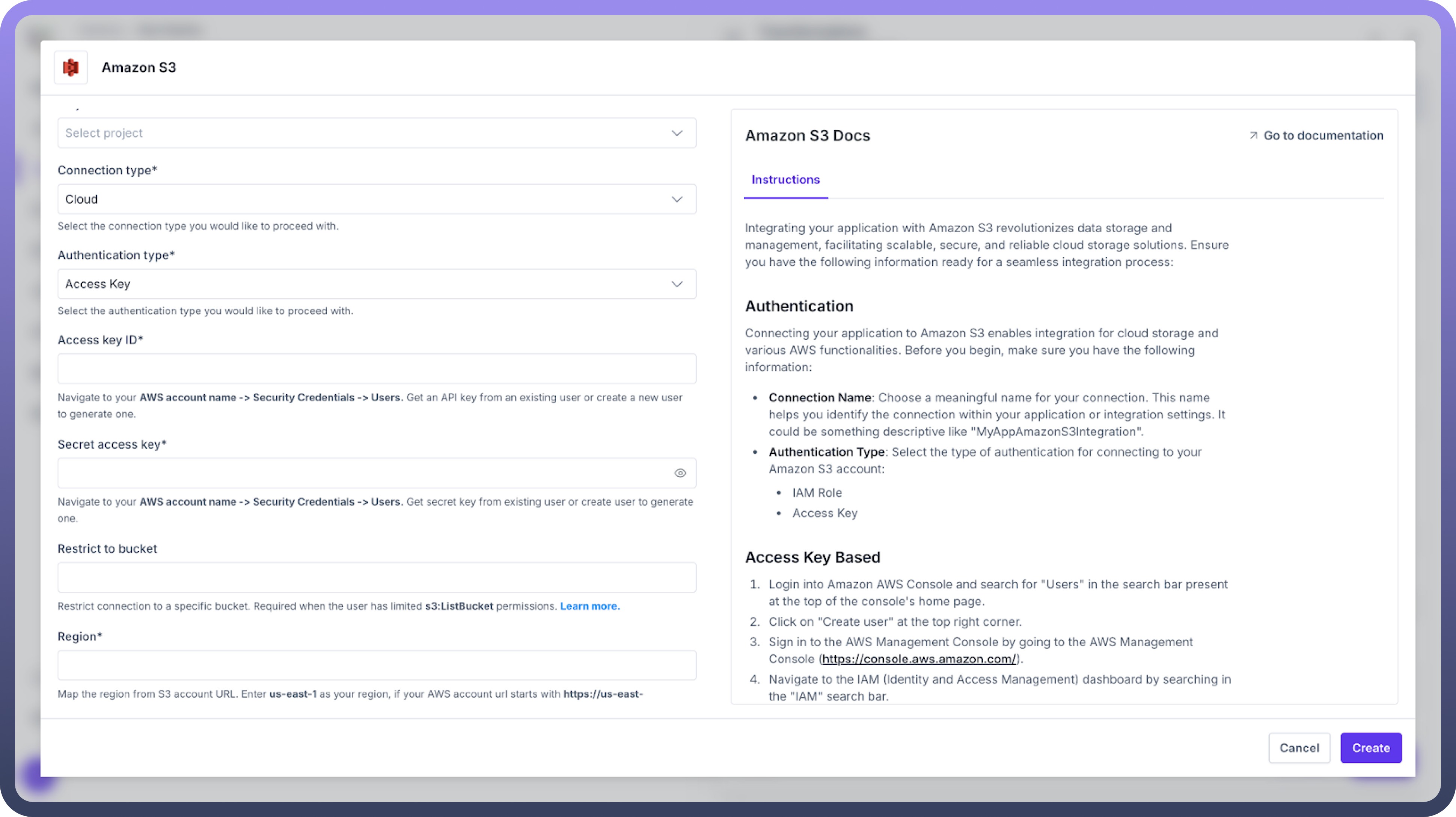 Upload Content to S3"Choose or create an Amazon S3 connection