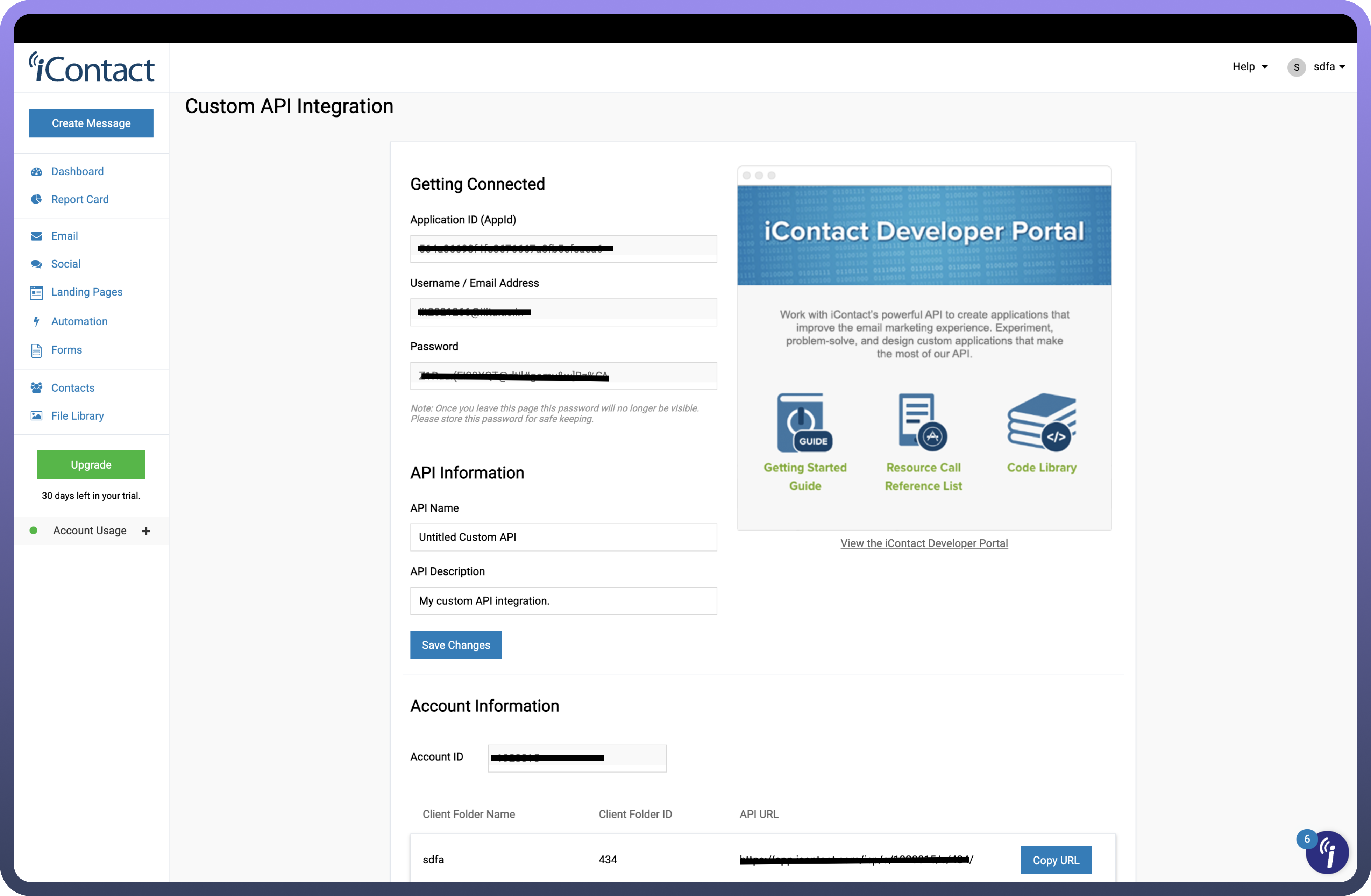 API Name' & 'Description' and click 'Save'.Store these securely as they provide access to your iContact account.
