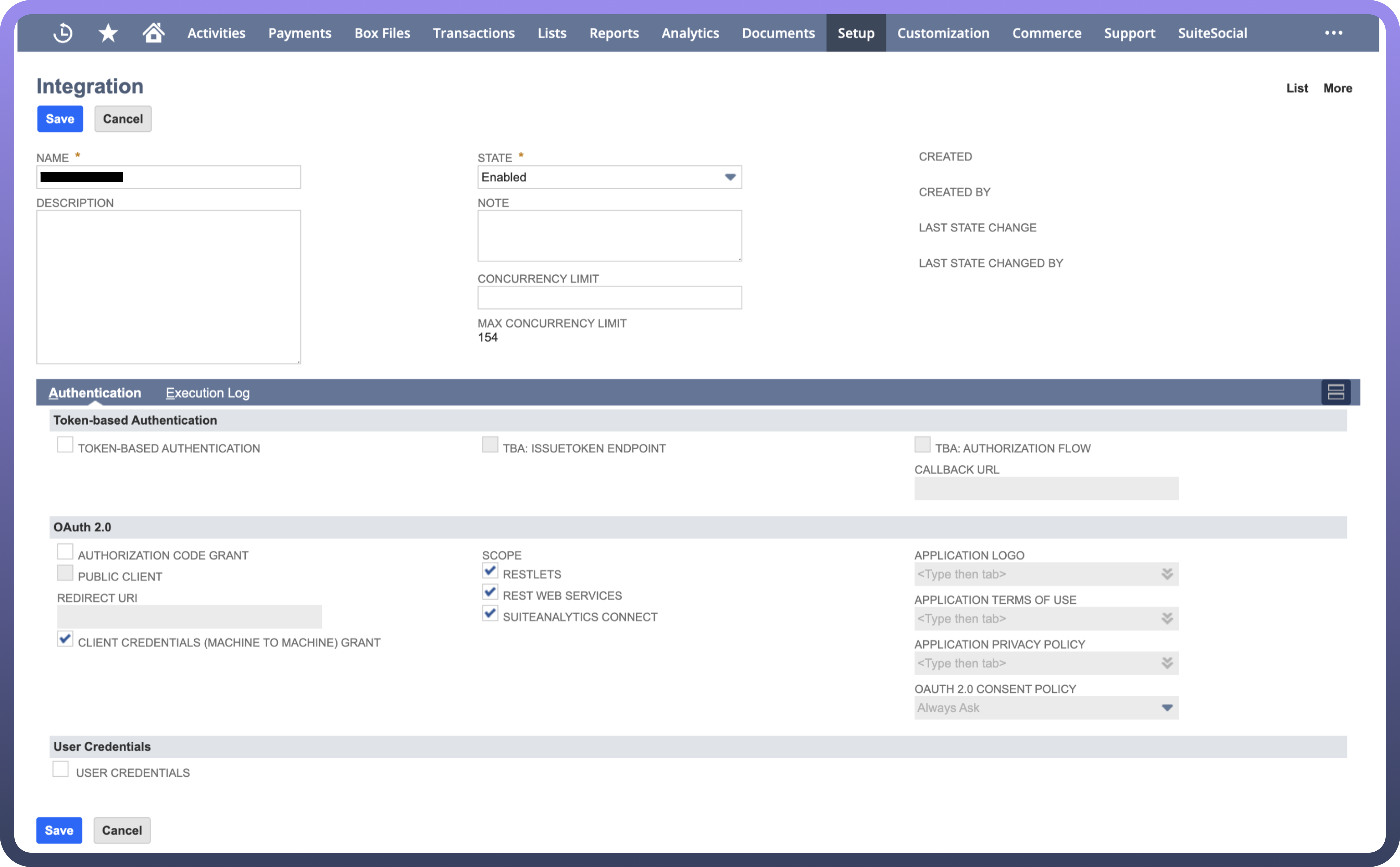 Integration Name, such as 'MyApp NetSuite Integration'.Under