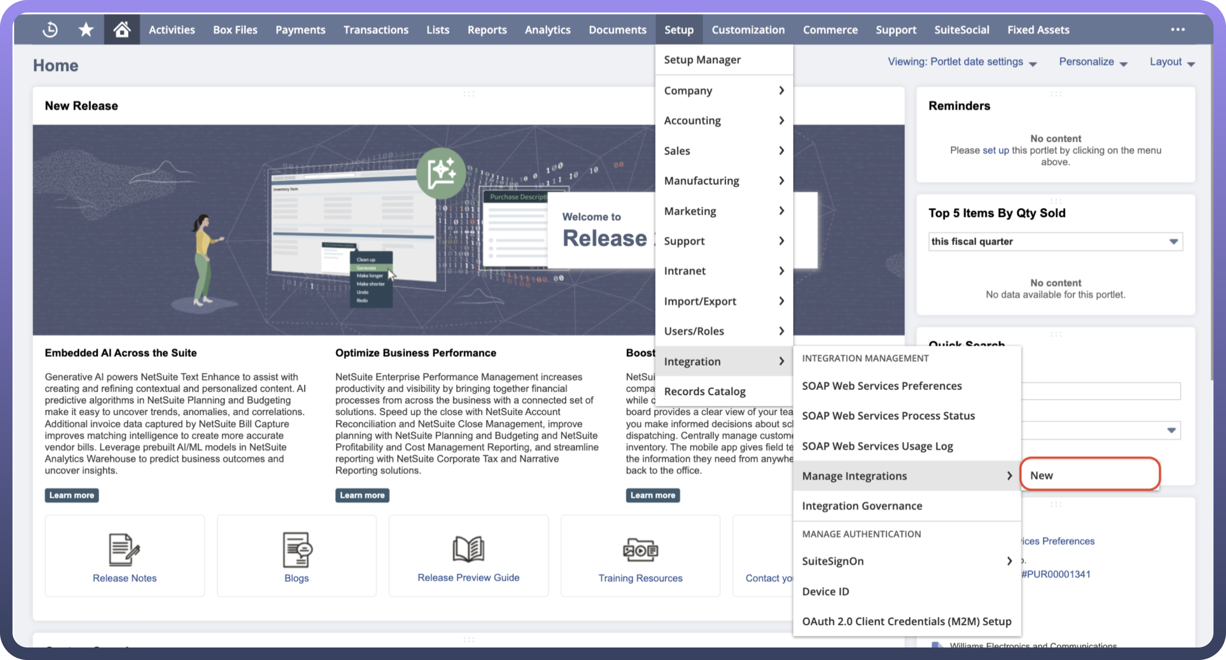 Setup>Integration>Manage Integrationsand thenNew.